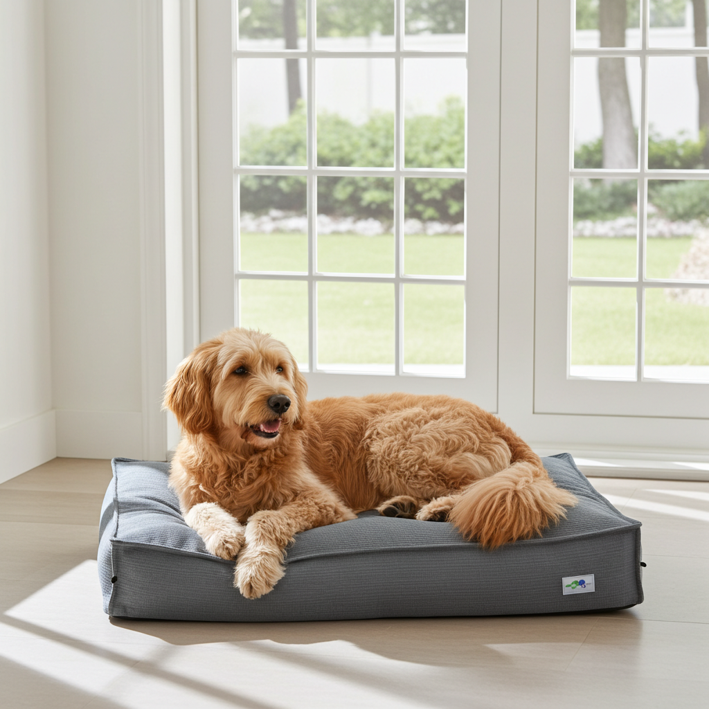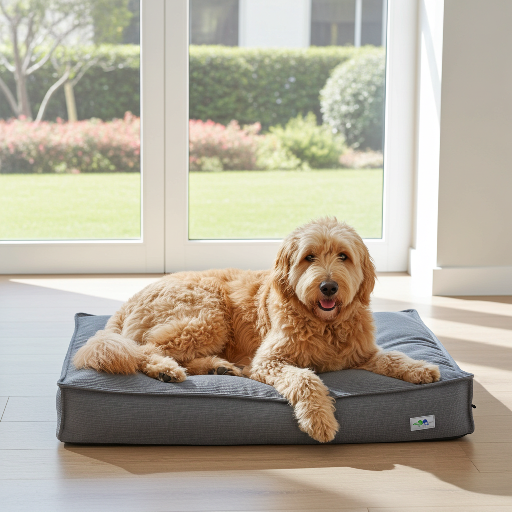 Veiligheid voorop: De onderzijde is afgewerkt met een sterke anti-slip laag. Hierdoor blijft het kussen stevig op zijn plek liggen, zelfs wanneer je hond enthousiast op het kussen springt op gladde vloeren zoals laminaat of tegels.